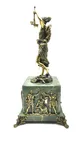 Центральным элементом композиции является статуэтка Фемиды, богини правосудия, воплощенной в детальной и величественной форме. Премиальный механизм часов обеспечивает безупречную точность хода, а элегантный дизайн и основание из высококачественного мрамора придают изделию неповторимый шик.